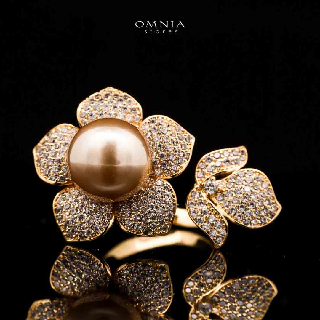 Omnia Ruba Golden Pearl Ring in High Quality Copper Rhodium Plated