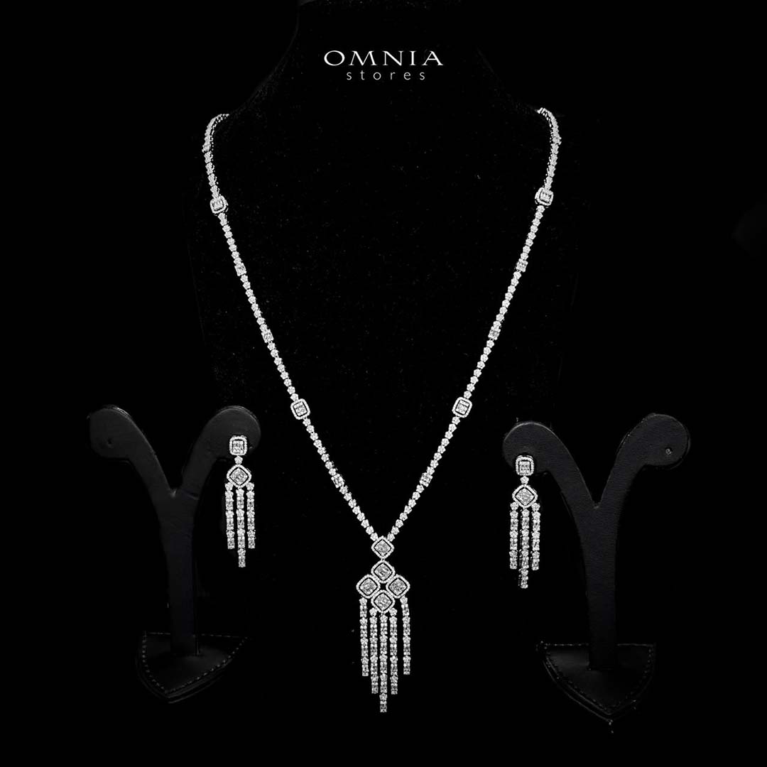Omnia Ruweya White Bridal Long chain Set In Rhodium Plated with High Quality Zircon Stone