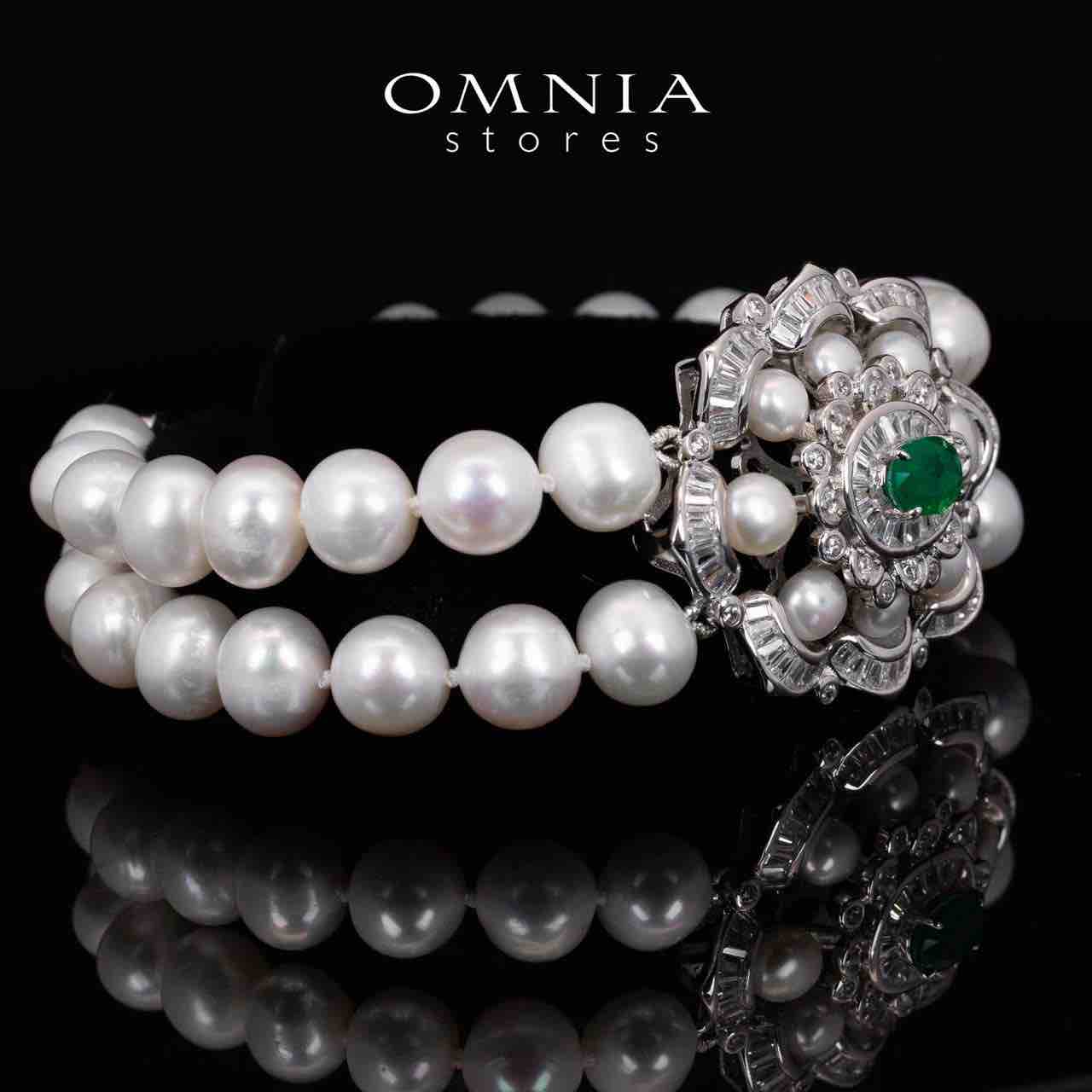 The Omnia Sabine Bracelet is a masterwork of balance and luxury. Artfully alternating between Vivid Emerald-Green Stones and Flawless White Pearls, this piece is accented by a constellation of High-Quality Simulated Diamonds. Forged in 925 Sterling Silver, the Sabine Bracelet is the definitive wrist accessory for the woman who values the deep connection between the treasures of the earth and the sea.