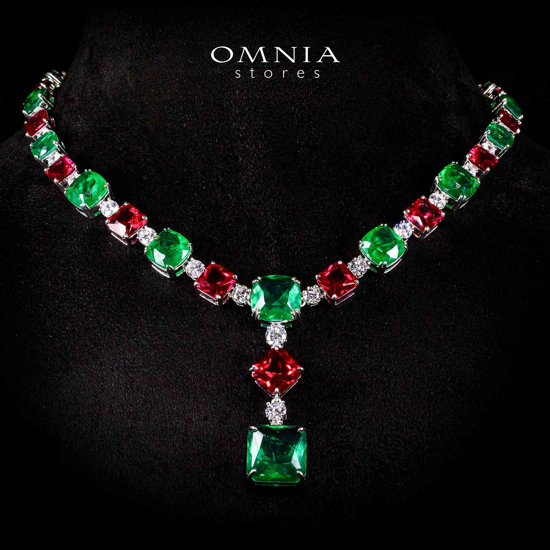 Omnia Salwa Red and Green Drop Earrings With High Quality Simulated Diamonds In 925 Silver