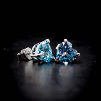 Omnia Sky Blue Heart Stud Earrings in 92.5 Silver with High Quality Simulated Diamonds
