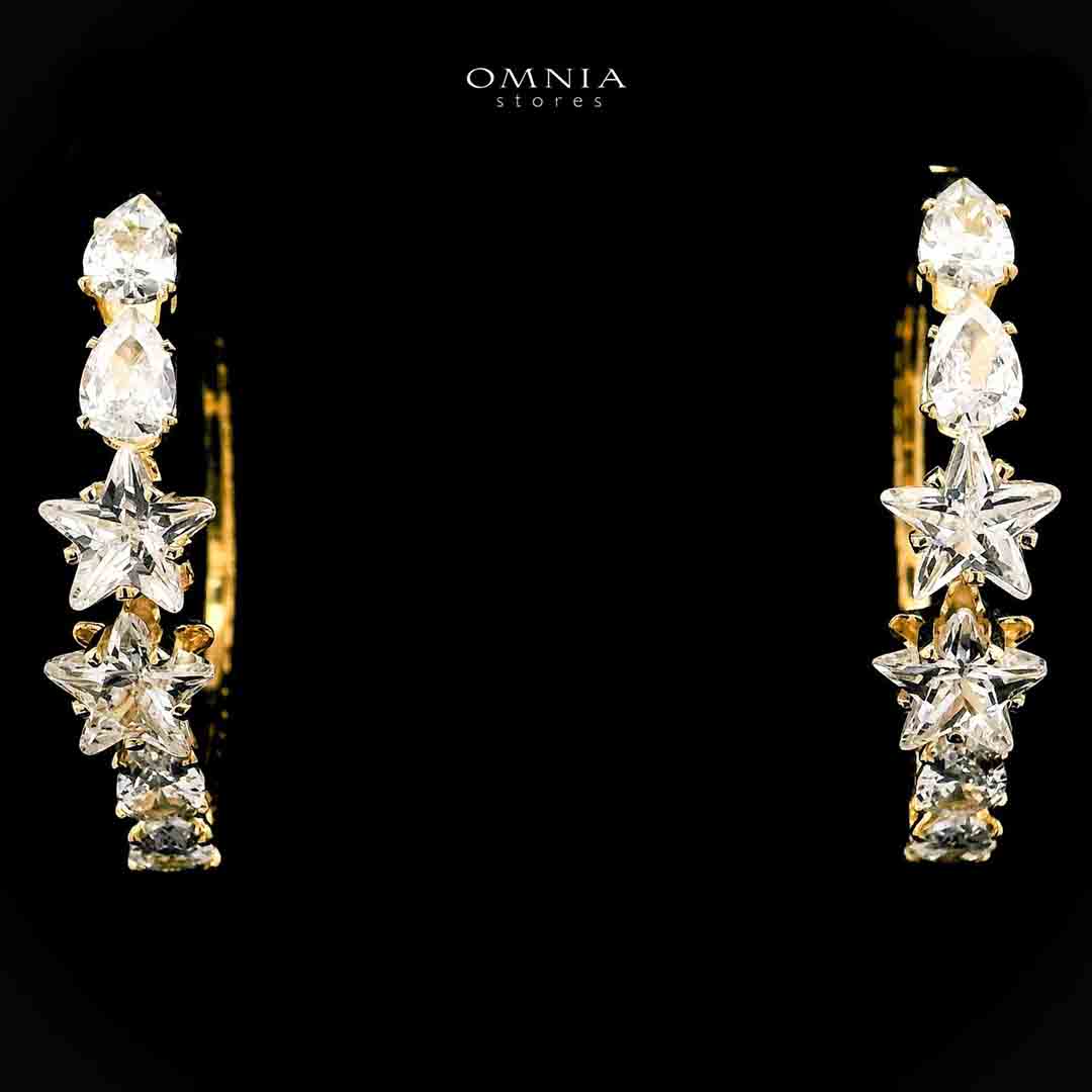 Unleash your inner radiance with the Omnia Shaheenah Golden Earrings, a luxurious fusion of regal charm and modern sophistication. Rhodium-plated in a rich gold finish and adorned with high-quality zircon stones, these earrings shine with brilliance that rivals real diamonds — making them a standout accessory for weddings and elegant occasions.