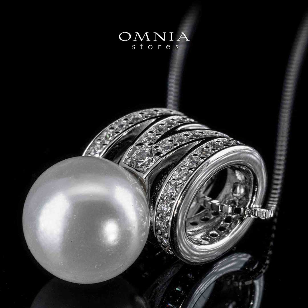 Omnia Shaira White Pearl Pendant Necklace With High Quality Simulated Diamonds in 925 Silver