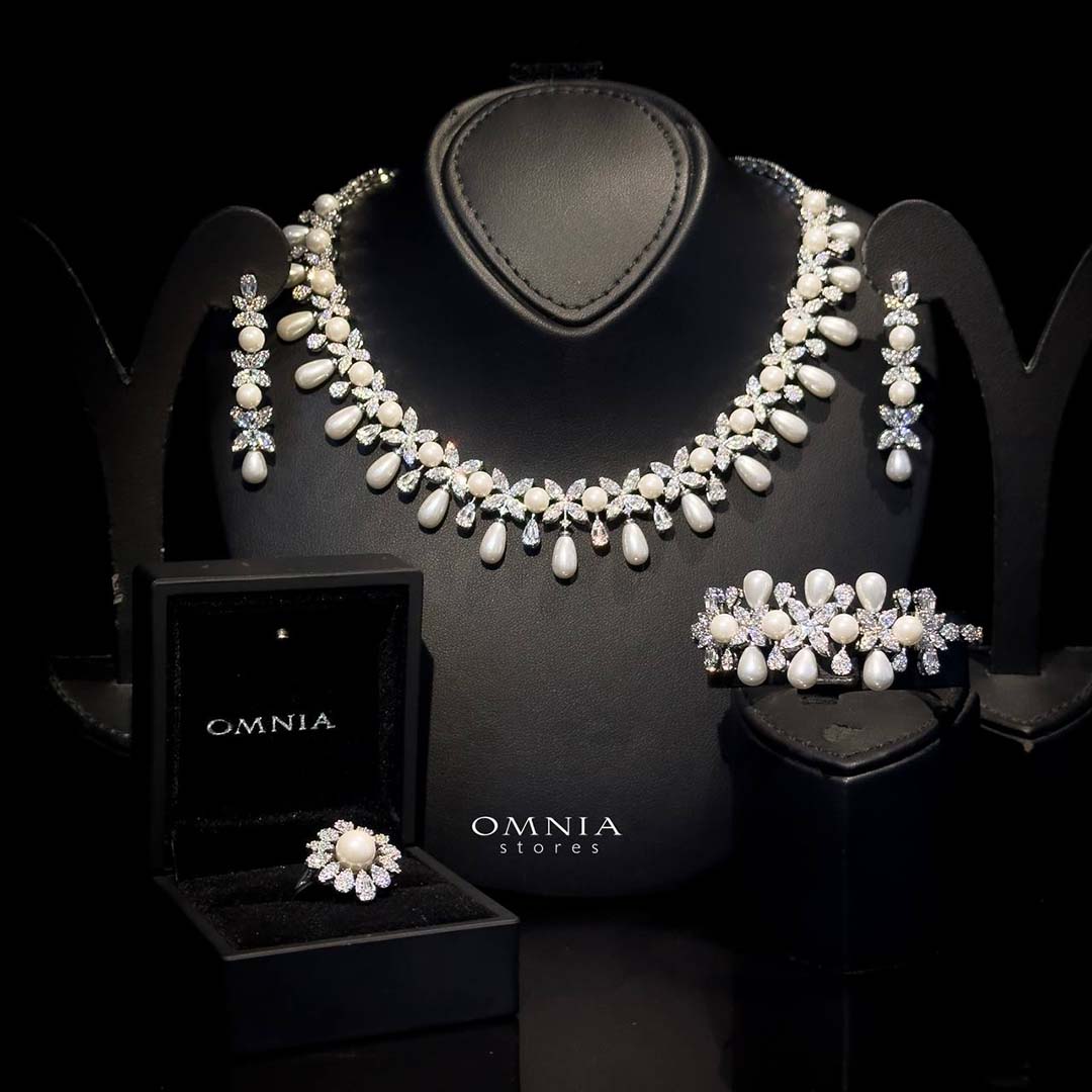Omnia Shulai Bridal Full Set Accessories in High Quality Zircon Stone in Rhodium Plated