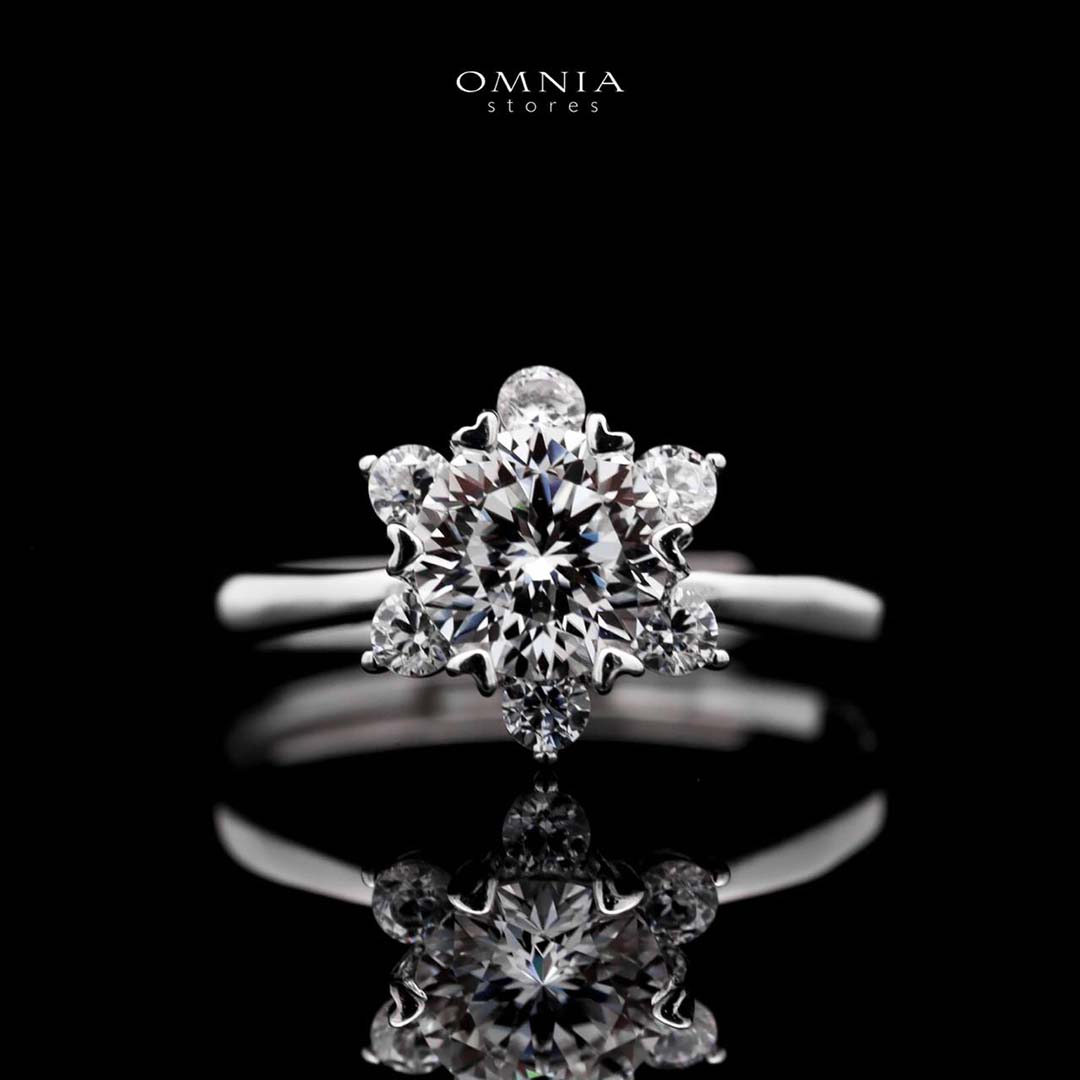 Omnia Silver Star Flower Ring in 92.5 Silver with High Quality Moissanite Stone