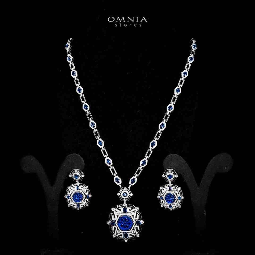 Elegance meets modern artistry in the Omnia Siwar Set, designed to add a regal touch to your special moments. Crafted from premium 925 sterling silver, this long chain necklace and matching earrings are encrusted with vibrant blue simulated diamond stones—capturing light and admiration wherever you go.