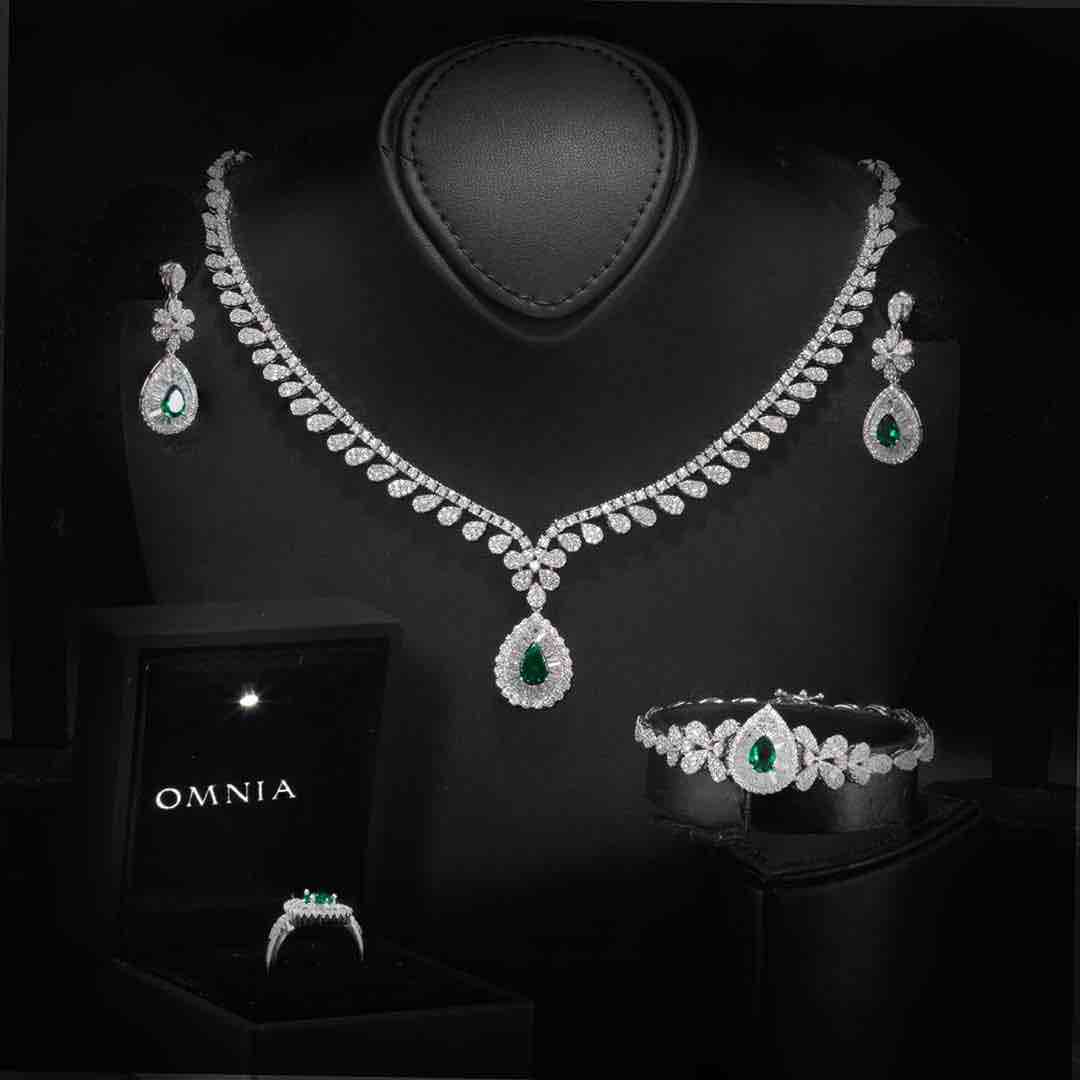Omnia Sophia Green Teardrop Bridal Full Set in 925 Silver with High-Quality Simulated Diamonds – A Regal Touch for Your Wedding Day