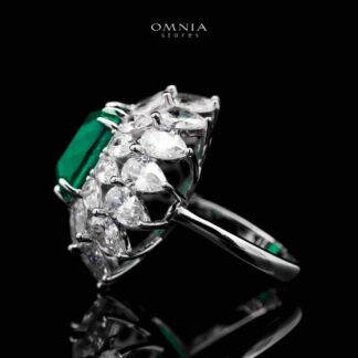 Omnia Thalia Green Ring In 92.5 Silver High Quality Simulated diamonds