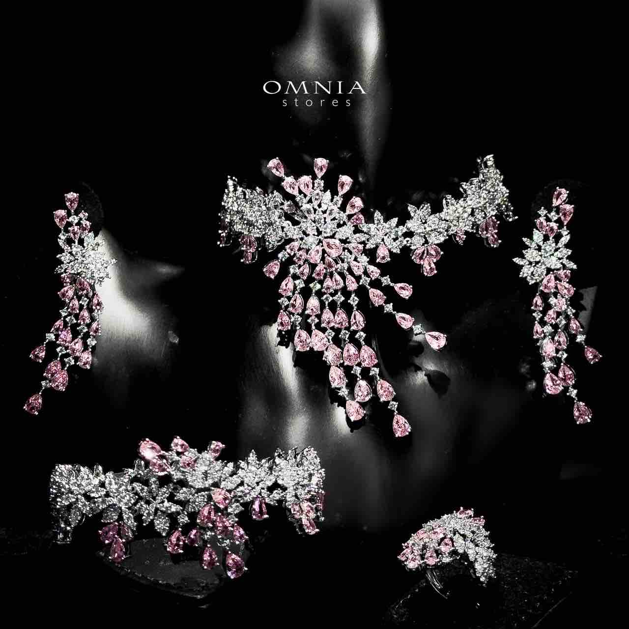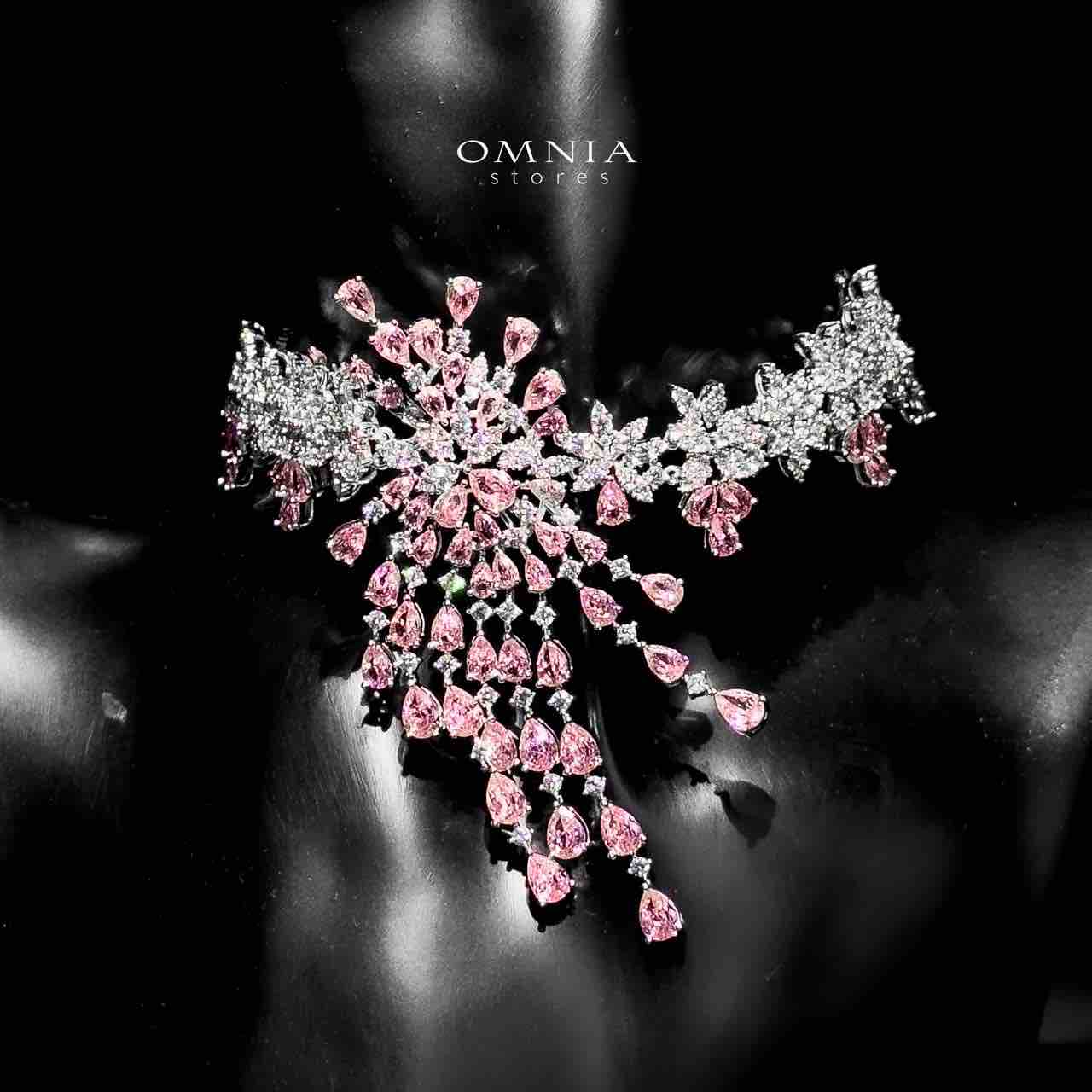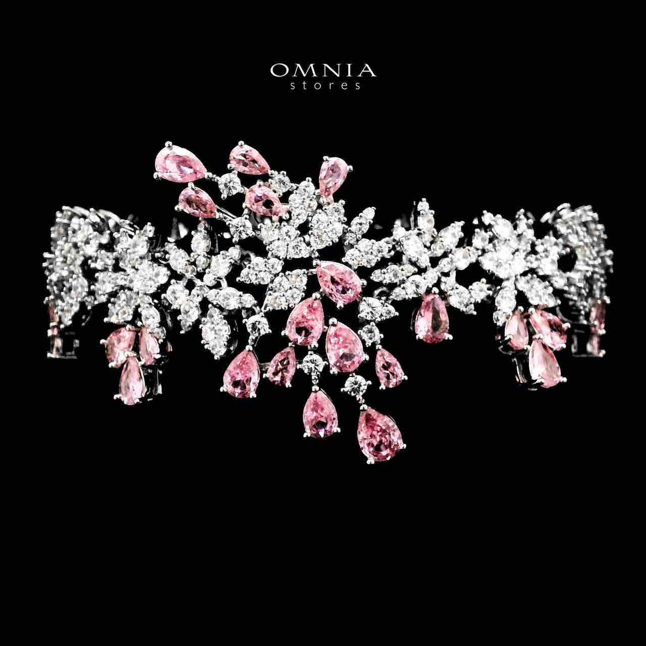 Omnia Taghreed Pink Choker Full Set in High Quality Zircon Stone in Rhodium Plated