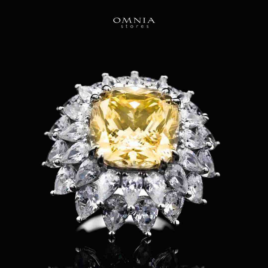Omnia Thalia Yellow Ring In 925 Silver High Quality Simulated diamonds