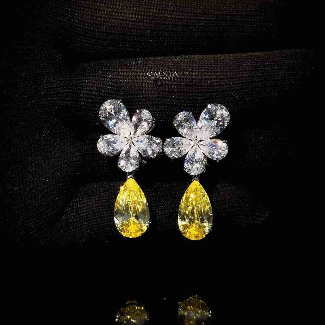 This set of high-quality 92.5 pure silver drop earrings is adorned with simulated diamonds, offering a touch of elegance and sparkle. Exquisitely handcrafted, these earrings are designed with a tarnish-resistant and tarnish-free coating, ensuring they maintain their brilliance over time. With their elegant style, these earrings are the perfect addition to any luxury fashion jewelry collection.