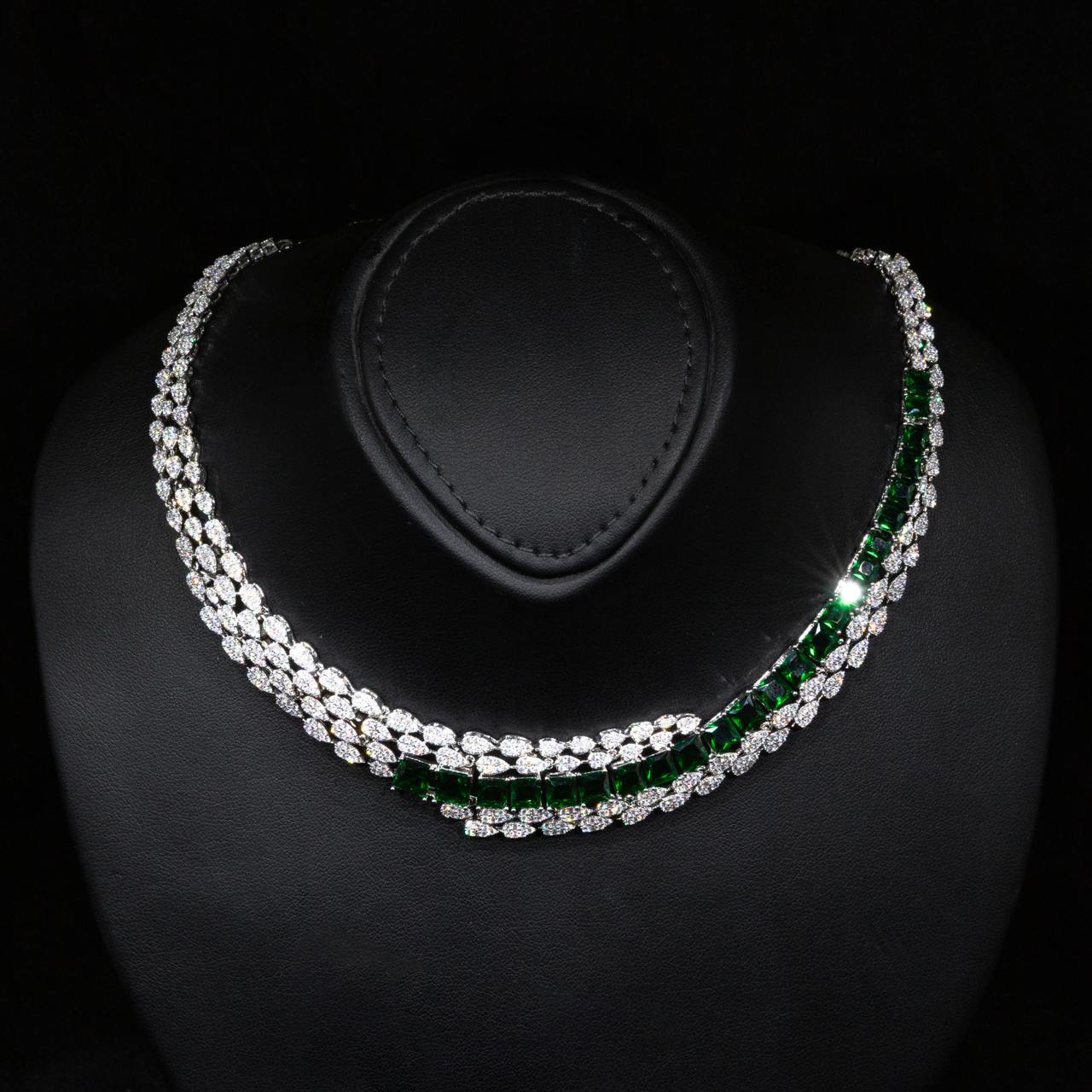 Omnia Trinity Green Luxury Bridal Full Set in High Quality Zircon Stone in Rhodium Plated