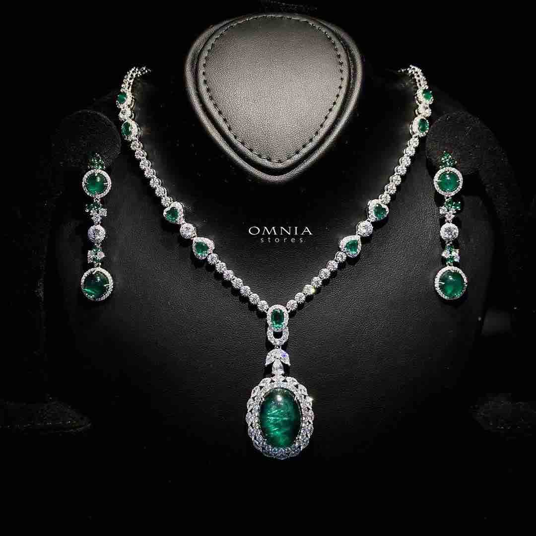 Set of High Quality 92.5 Green Necklace and Earring Set