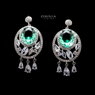 Omnia Rola Emerald Drop Earrings with White Zircon Accents in High Quality Rhodium Plated