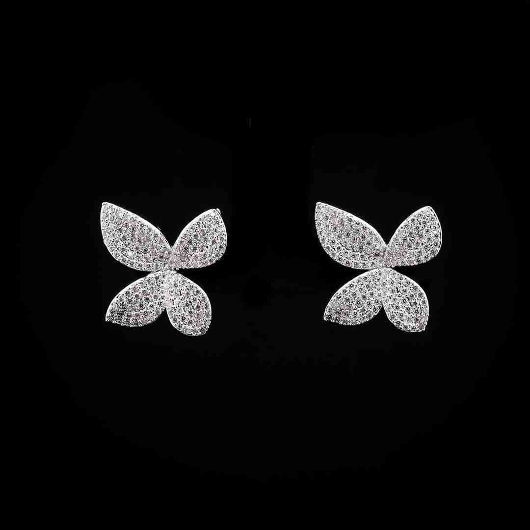 Omnia White Butterfly Earrings with High-Quality Zircon Stones in Rhodium Plated