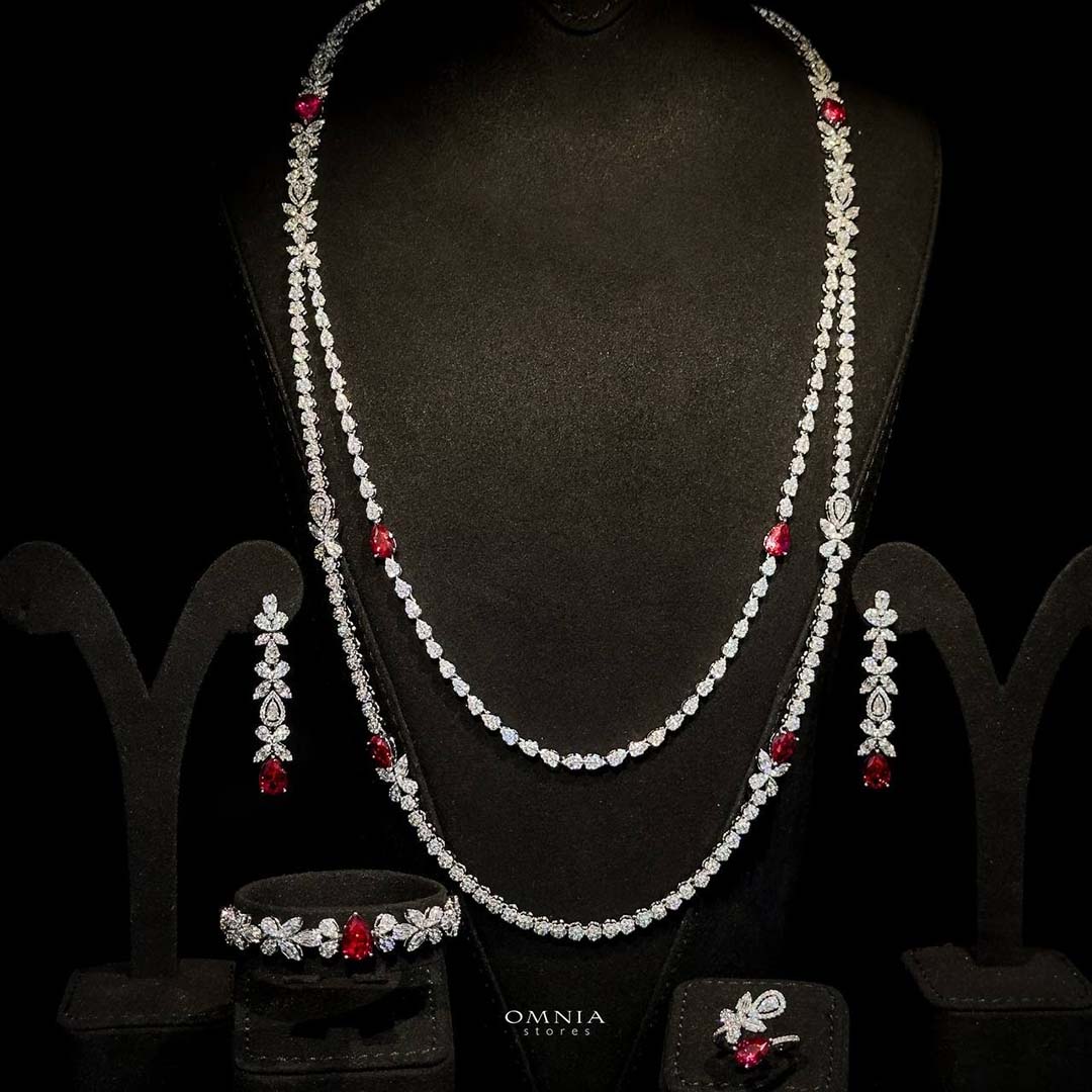 Omnia Yaza Bridal Red Long Chain Set – High-Quality Zircon Stones in Rhodium Plated