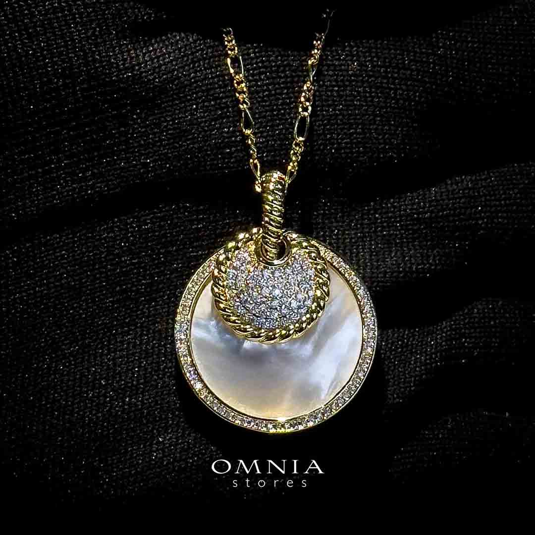 Omnia Zohair Pendant Necklace in Brass Gold Plated with Mother of Pearl
