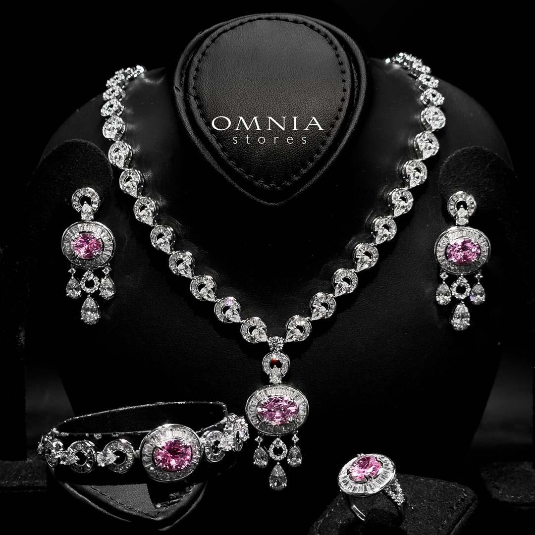 Celebrate love in its most romantic form with the Omnia Hayah Pink Bridal Full Set — a bridal jewelry collection designed to enchant. Adorned with delicate pink high-quality zircon stones and finished in a brilliant rhodium plating, this full set captures the soft beauty and joyful spirit of a bride in love.