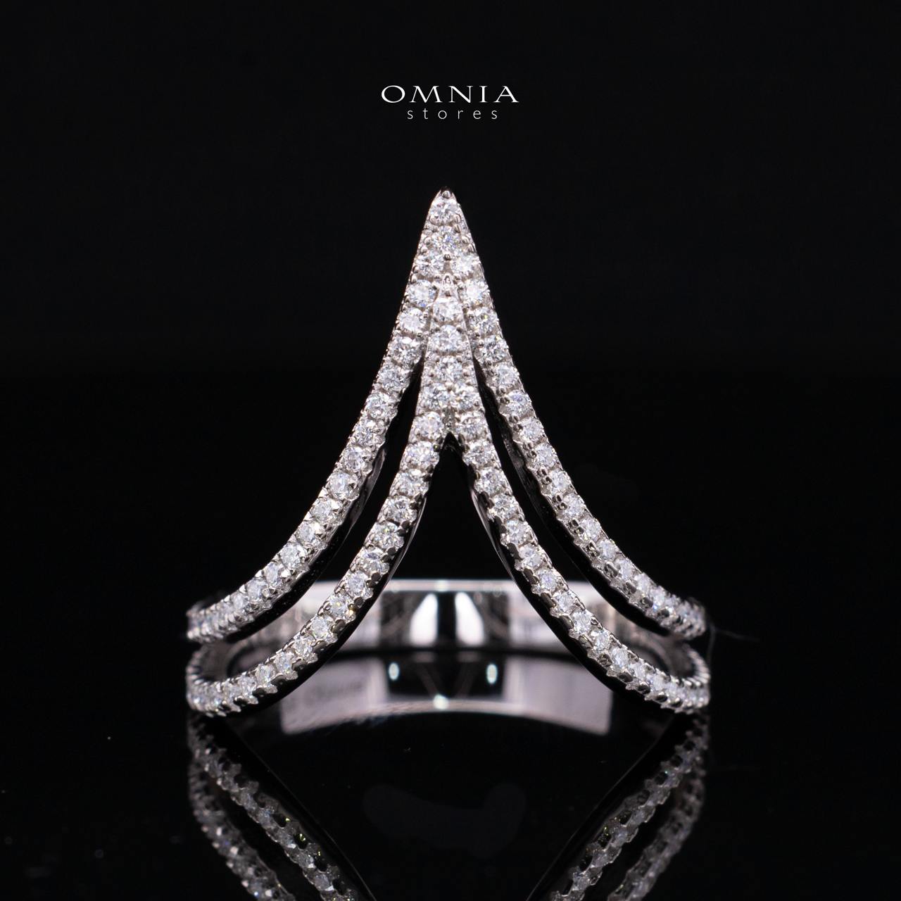 Elevate your jewelry collection with the Qasida White Moissanite Triple-Layer Chevron Pavé Ring, a striking piece designed for women who appreciate contemporary luxury. Featuring a refined triple-layer V-shaped (chevron) design, this ring is beautifully lined with pavé-set white moissanite stones, delivering exceptional brilliance and a captivating sparkle from every angle.