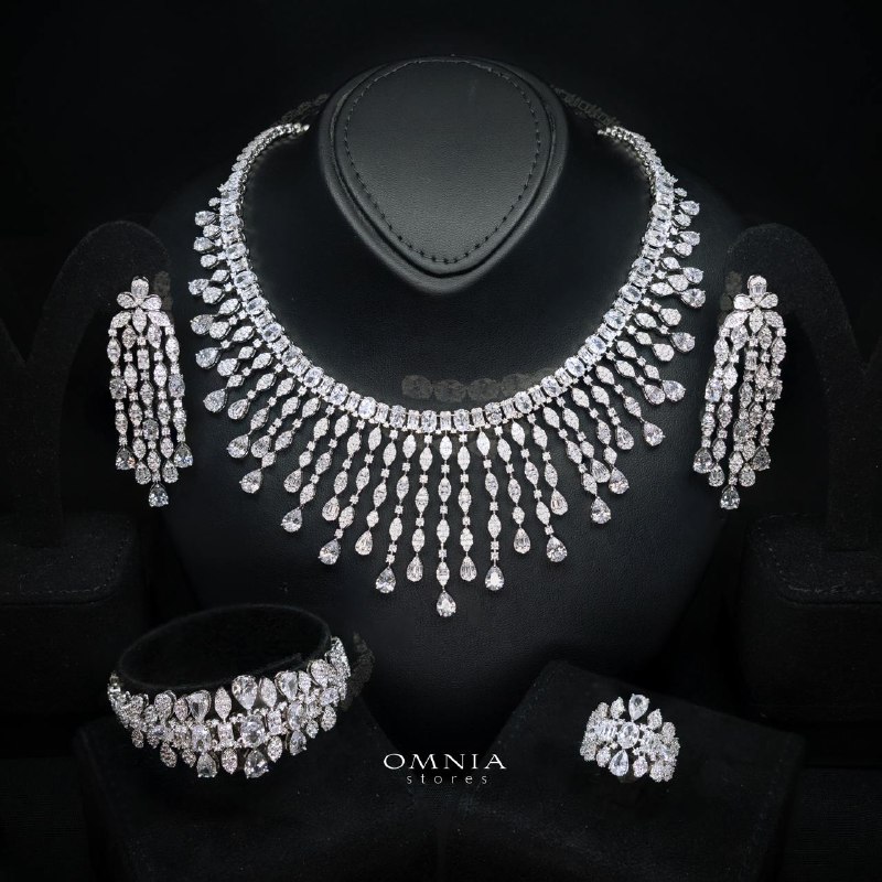 Finished with premium rhodium plating, each piece offers a long-lasting shine while providing excellent resistance to tarnish, ensuring your jewelry maintains its luxurious white gold appearance over time. The elegant design makes it a perfect match for both traditional and contemporary outfits, ideal for weddings, engagements, and special occasions in the UAE, Saudi Arabia, Qatar, and beyond.