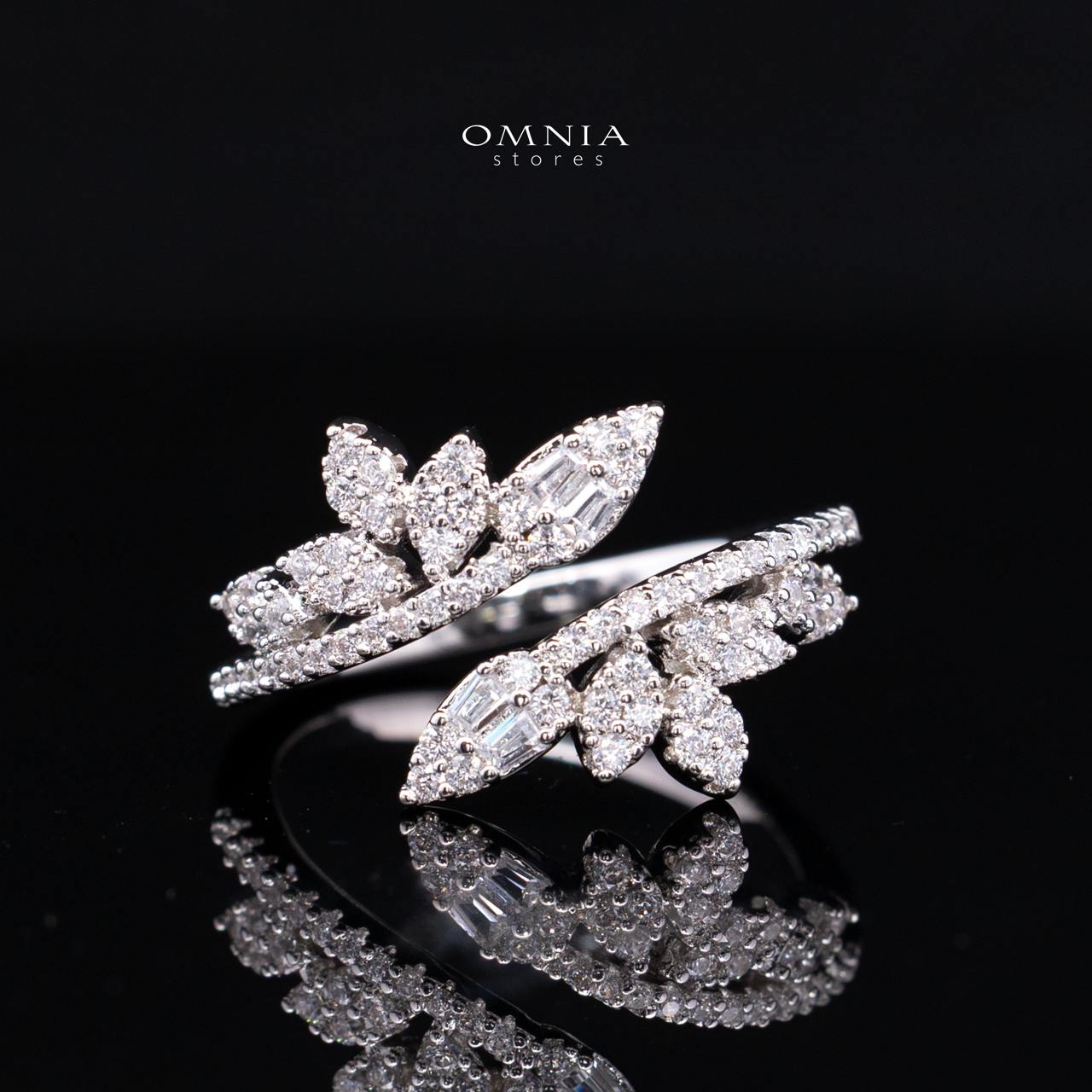- Elegant feather leaf design with marquise-style stone setting