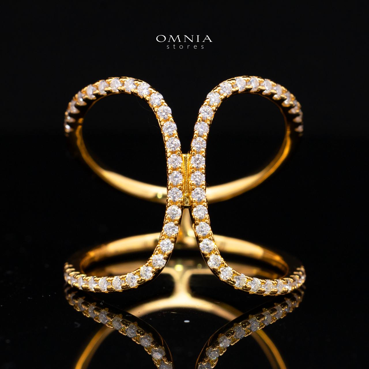 Sariba White Moissanite Open Crossover Pavé Ring – Gold-Plated 925 Sterling Silver
