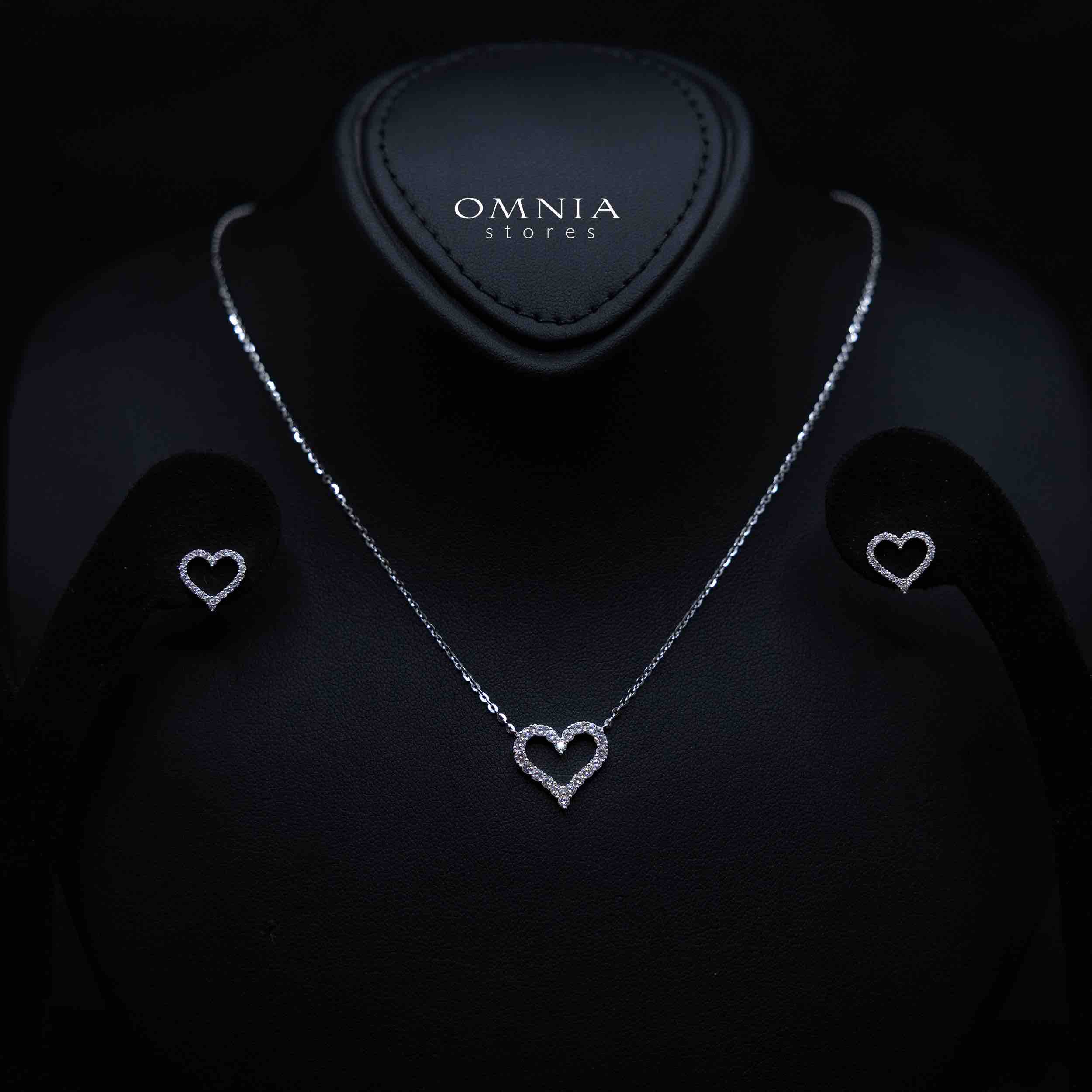 shahana White Heart Design Silver Necklace and Earrings Set in 925 Silver with High-Quality Premium Cubic Zircon Stones