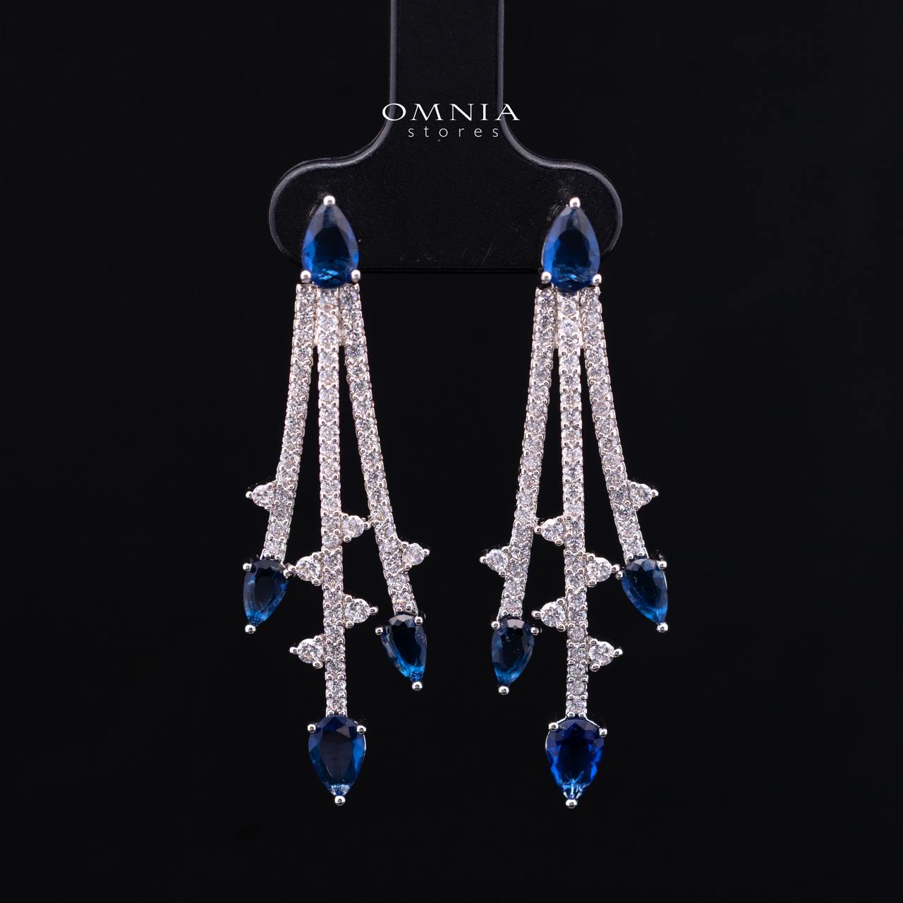 Yuliana Luxury Blue Bridal Full Set with High-Quality Premium Zircon Stones, Rhodium-Plated